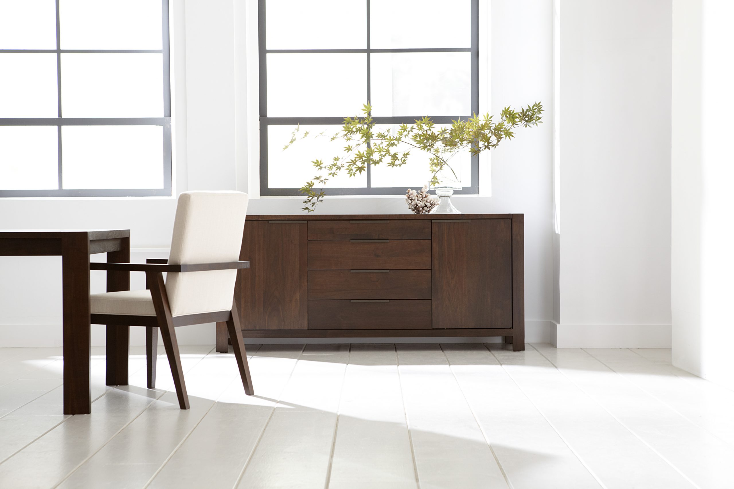 Phase Walnut Credenza is a statement piece for dining, office or anywhere you need beautiful storage. solid walnut with 4 drawers and 2 doors. 72x19x32h