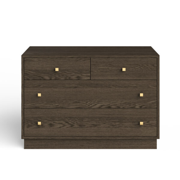 Inset plinth bases on the Fleetwood collection give these pieces a sleek, uniform line. Good companions to both storage and leg beds, the plinth somehow eases the transition out of the bedroom and into other spaces for broader use. Mix and match stained and painted pieces or consider a low sideboard for sweaters and linens to build an eclectic, collected look.
