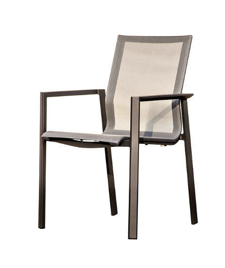 6 Seat sectional, powder coated aluminum frame in oyster finish. Sling seat deck and pitched frame for perfect comfort; outdoor foam and sunbrella fabric for quick dry time and easy care. Cushions in Sunbrella Cast Sage